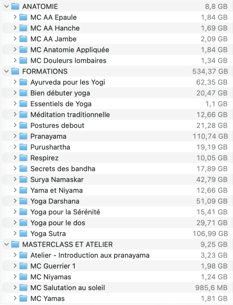 - Vérifiez que vous disposez de suffisamment d’espace libre sur votre ordinateur avant de lancer le téléchargement (la taille de chaque formation est indiquée sur la page).